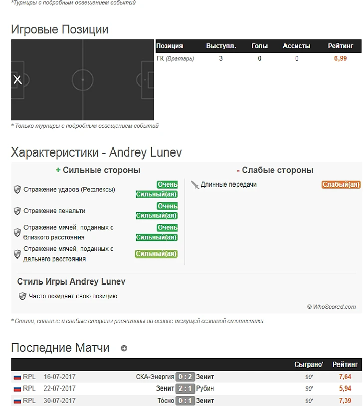 По итогам прошлого сезона у Лунева лучший процент отбитых ударов среди всех голкиперов премьер-лиги – 84%.
