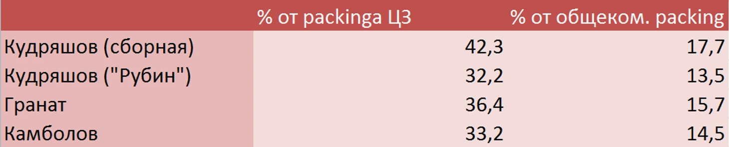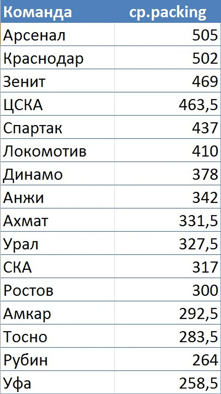 Неудивительно, что с такой позиционной структурой «Рубин» оказался вторым с конца по packing-показателям после двух туров.