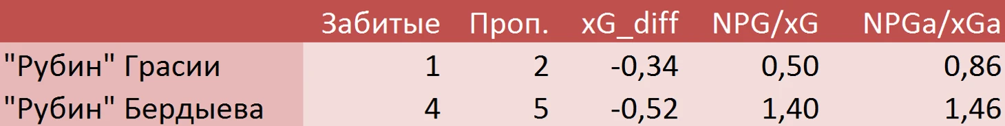 Череда ошибок, допускаемых казанскими футболистами от матча к матчу, привела к слабейшему личному старту Бердыева за последние годы. Первые три тура сезона 2016/2017 с «Ростовом» Курбан Бекиевич начал с разницей xG +0,9, в 2015/2016 с разницей +2,63. «Рубину»-2017 можно сделать послабление: сложный календарь, игра против двух команд из зоны еврокубков, но разница в моментах все равно колоссальна.