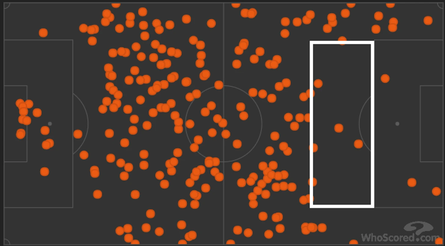 Единственный вариант создания моментов - бесконечные забросы центральных защитников на Жонатаса (доля лонгболлов - 21,3%, весь Чемпионшип стоя аплодирует таким цифрам). Активность в определяющей 14-й зоне также шла лишь от скидок Жонатаса.