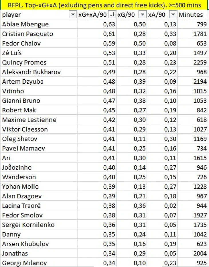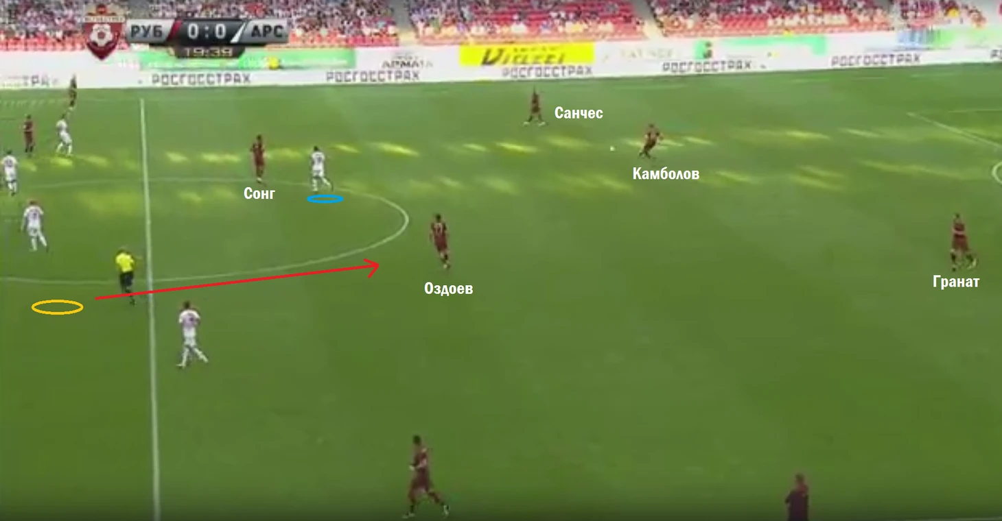 Еще более удручающее зрелище - игра Магомеда Оздоева. Матч с «Краснодаром» - packing-показатель 21, при 60% успешных пасов (для сравнения, Лестьенн, играющий гораздо выше, имел в том же матче точность передач – 75%), матч с «Арсеналом» - 0 xG, 0,01 xA, 13 из 22 передач в первом тайме – назад.