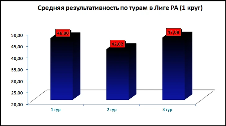 Средняя результативность 3-го тура в Лиге РА - 47,08 очка на команду