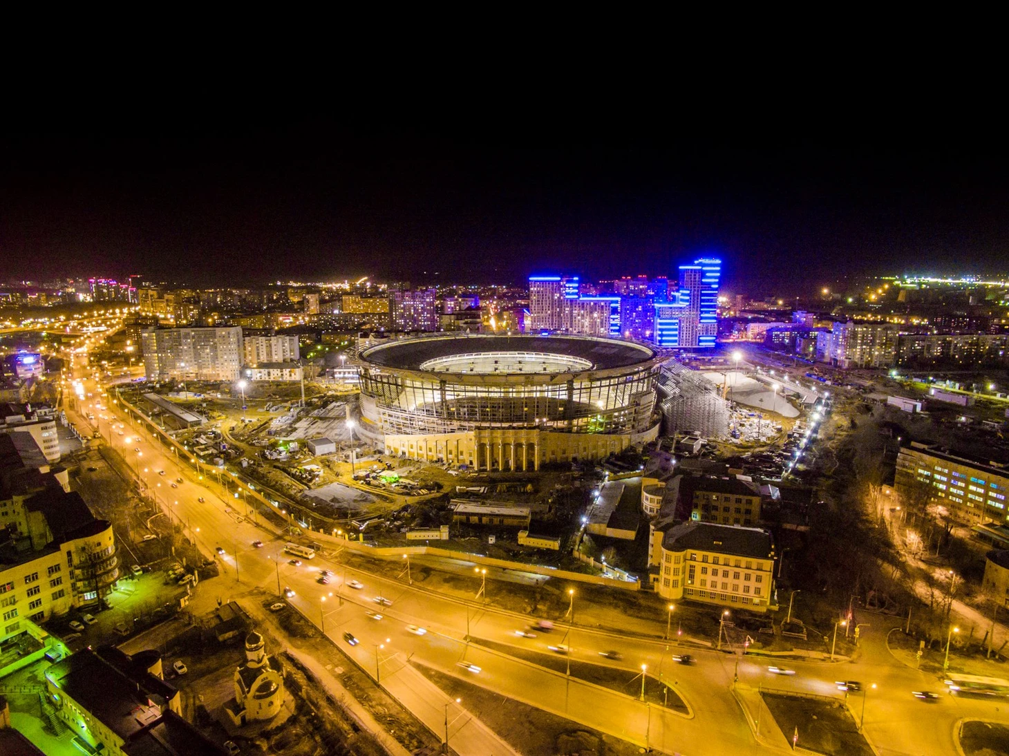 Центральный стадион (на время проведения ЧМ «Екатеринбург Арена»); Вместительность: 45 015; Дата окончания стройки: зима 2017 г.