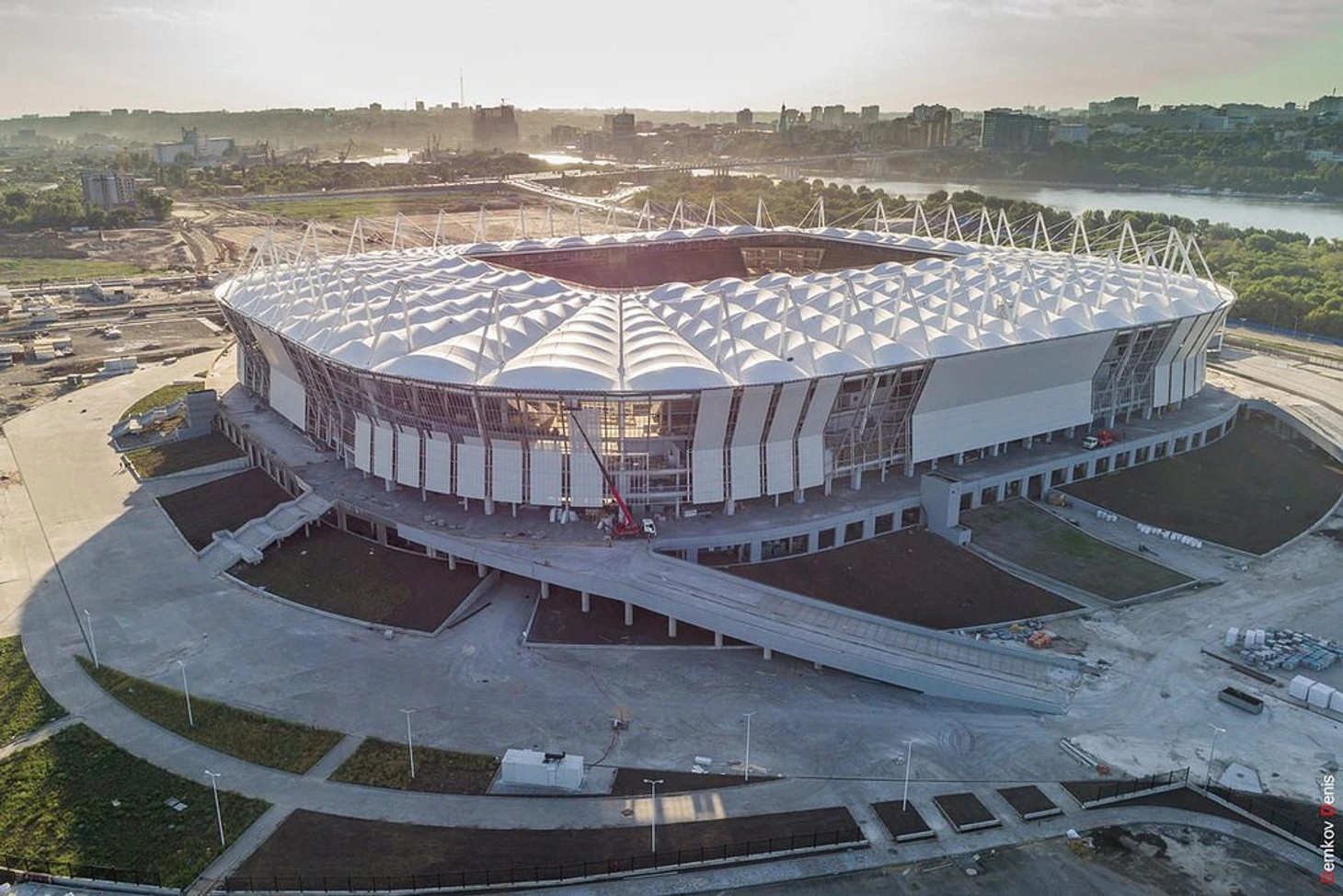 Первой остановкой по стадионам России стала Ростов-Арена. Стадион спроектирован с применением передовых технологий российского и зарубежного опыта проектирования стадионов, а также с учетом требований "зеленых стандартов" строительства, основывающихся на принципах эргономики, экологии и экономии природных ресурсов.