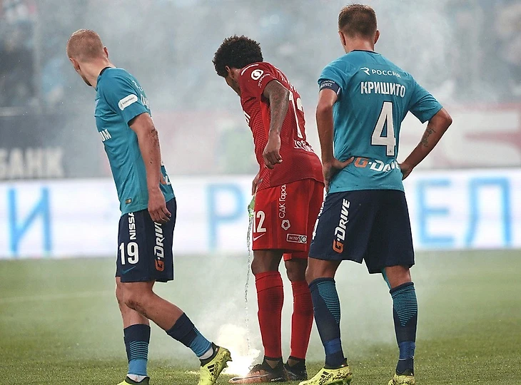 За использование и бросание зрителями на стадионе пиротехнических изделий во время матча.