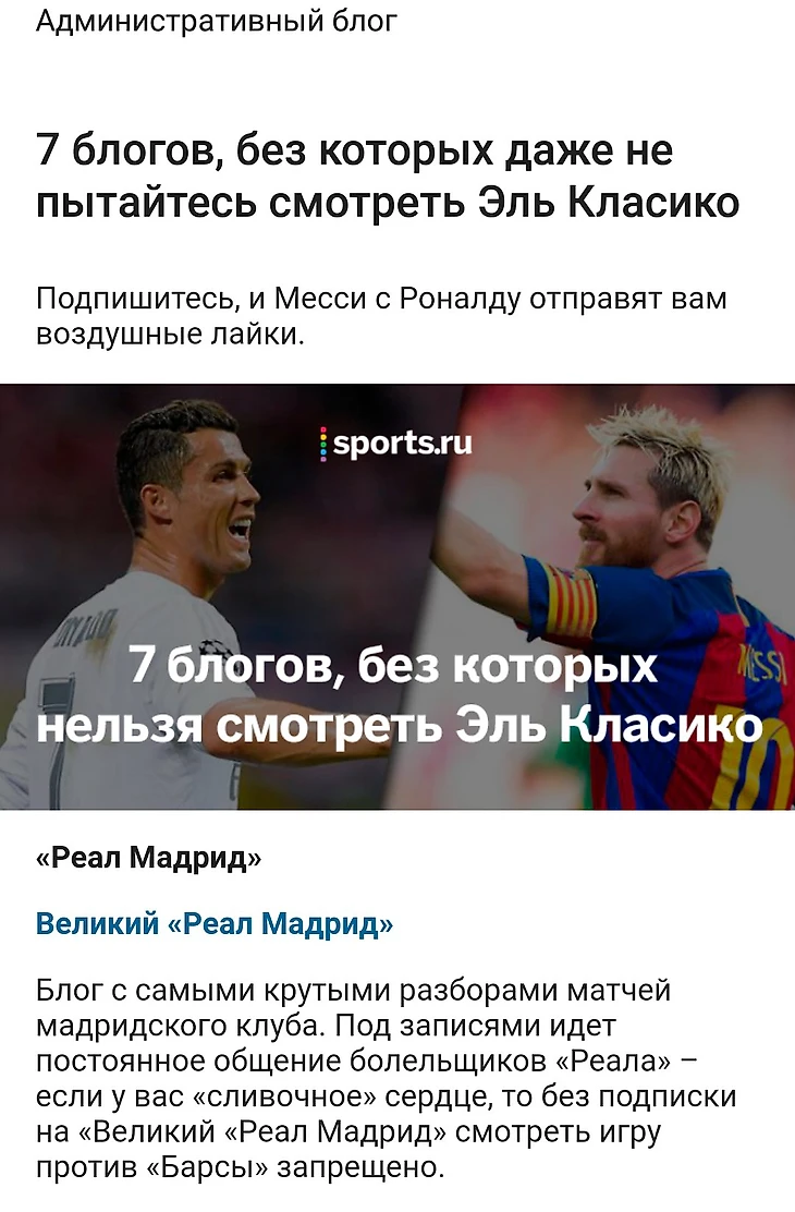 В действительности осталось только 2 конкретно тематических блога про мадридский "Реал". Знаете в чем вся прелесть сегодняшнего материала? Именно со следующим подписчиком удастся обойти "Радио Реал" и останется последний блог на пути к цели. Надеюсь, этим самым подписчиком станете вы. Если вы читаете эти строки, вам нравятся материалы блога, то, давайте, подписывайтесь :) Я всегда рад всем новым мнениям, пожеланиям, дополнениям и адекватной критике. Добро пожаловать в мадридскую семью!