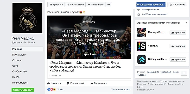 А еще почти 3 тысячи лайков для крайнего материала блога на странице Реал Мадрид в facebook.