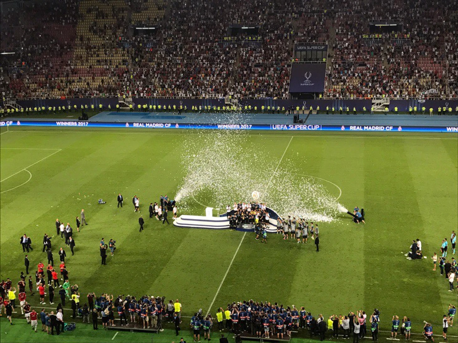 Кубок взял «Реал» (описывать игру нет смысла – вы сами все видели). Главный тренер «МЮ», Жозе Моуриньо, подошел к ограждениям перед фанатским сектором своей команды: эти ребята преодолели огромный путь из Англии и действительно зажгли этот город. Казалось, что будь сектор англичан тут пониже – Жозе бы туда залез, но так пришлось ограничиться лишь рукопожатием для ребят с нижних рядов.