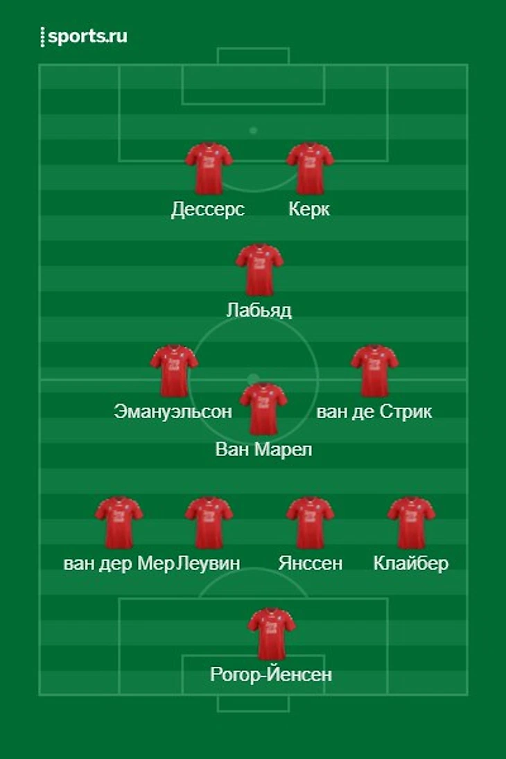 67' Произошло нечто, выходящее из Охотного ряда вон. Игрок гостей Люккассен был удалён, хотя даже не дотронулся до игрока "Утрехта". Мда.