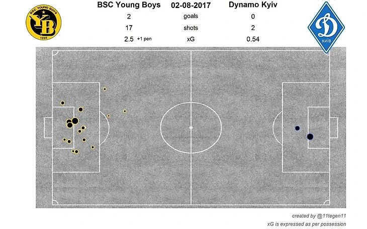 "Янг Бойз" уже успел огорчить киевских любителей футбола, пройдя "Динамо" благодаря голу на выезде. Жуть, как не люблю эту систему, но в этот раз всё закономерно. Отличный тренер Александр Хацкевич "верит, что это поражение - лишь случайность", но это не совсем так. "Янг Бойз" перебили оппонента по xG(суммарно 4.71-3.92), заслуженно пройдя в следующий раунд.