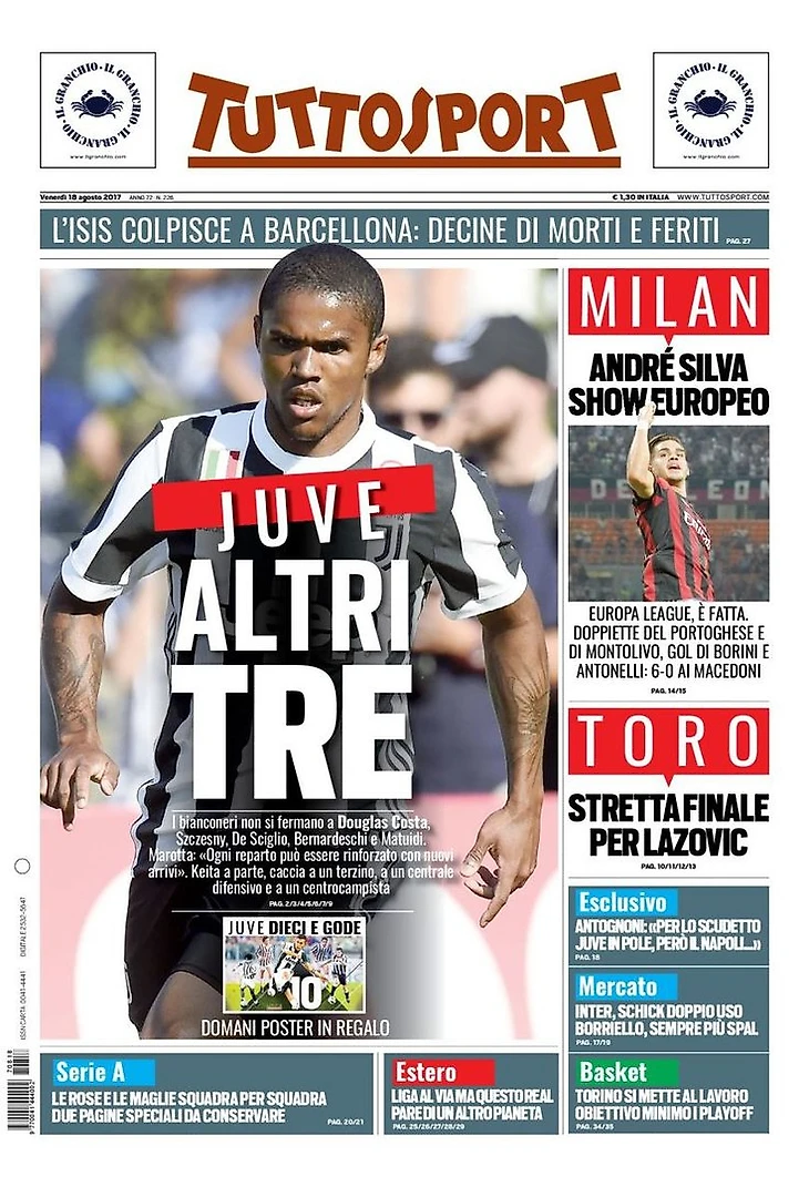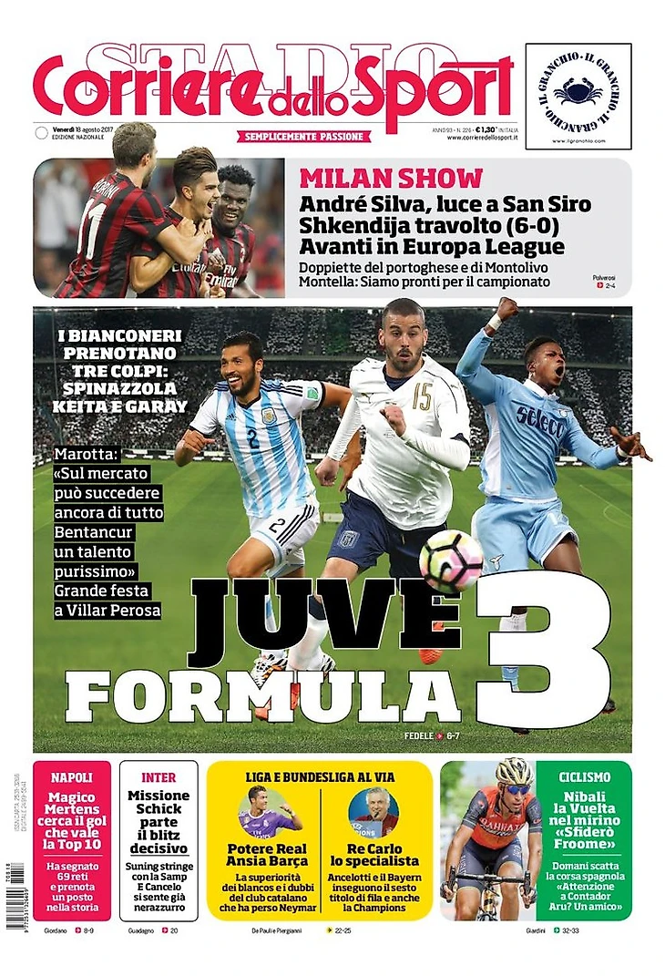 «Милан», голевая Македония. Заголовки Gazzetta, TuttoSport и Corriere за 18 августа