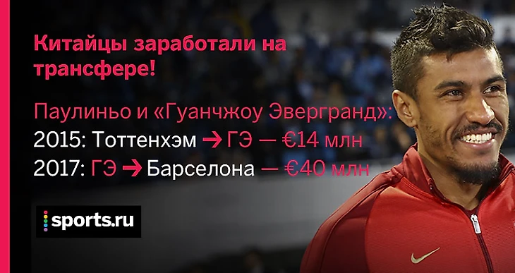 Нескоро поменяется представление о том, что китайские футбольные клубы жутко переплачивают, вывозя из Европы в основном возрастных игроков и почти не имея шансов потом их выгодно перепродать. Однако этим летом сначала по понятным причинам супертрансферы почти прекратились, а теперь и вовсе случилось неожиданное: клуб «Гуанчжоу Эвергранд» сумел продать бразильского полузащитника Паулиньо в Европу значительно дороже, чем его оттуда покупал.