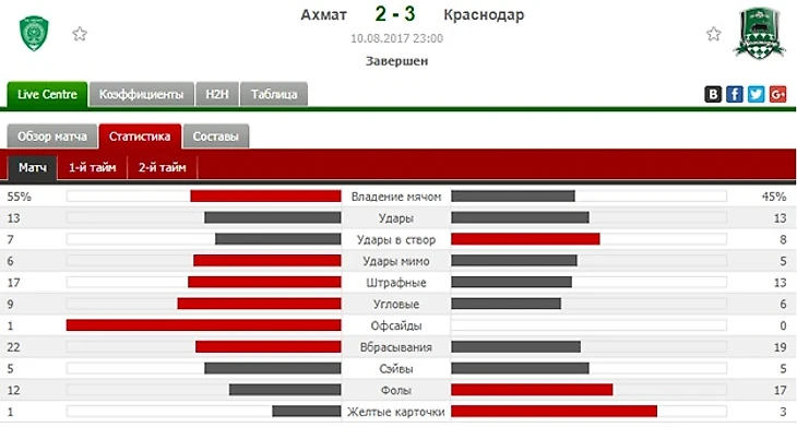 Календарь подарил нам возможность рассмотреть конкретный пример - победу в очной встрече прагматичного «Краснодар» над комбинационно-творческим «Ахматом». Можно ли сказать, что «быки» играли уверенно и явно сильнее соперника? Скорее нет, чем да. Но если вы не смотрели матч и решили сделать вывод о нём лишь по результатам статистики, вот что вас ожидает.