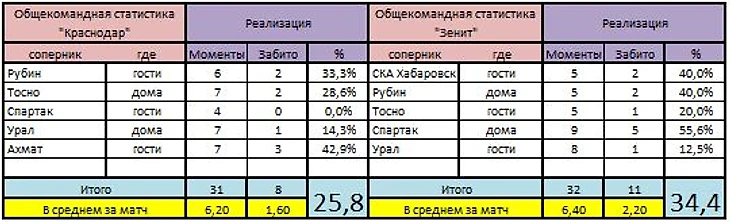 После пяти матчей количество голевых моментов у команд чуть ли не равное. Просто у «Зенита» моменты были немного острее, плюс команда на 10% лучше реализовала созданное.
