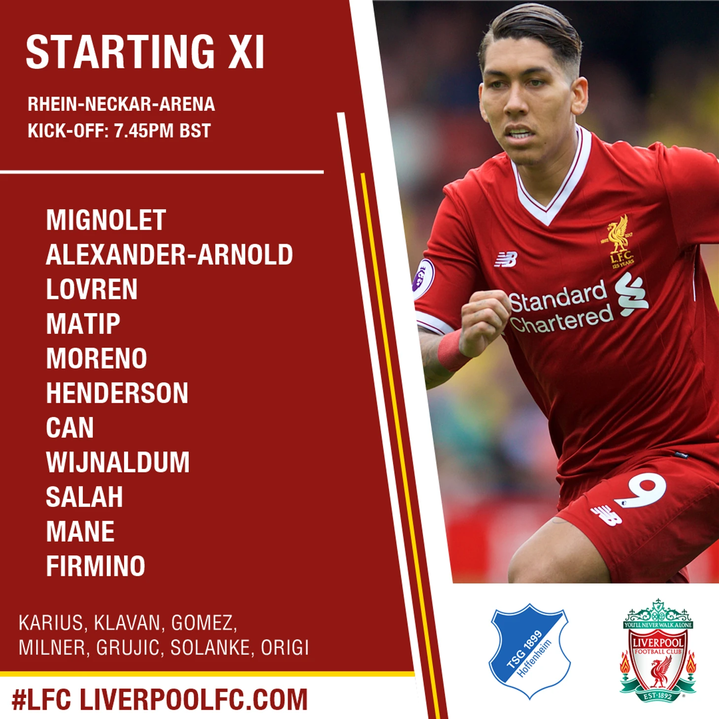 Первые минуты встречи продемонстрировали, что с главной проблемой мерсисайдцы так и не разобрались. Игры без мяча не было совсем. Активный прессинг «Хоффенхайма» привёл к назначению быстрого пенальти. Исполнять его отправился Крамарич, но пробил откровенно плохо. Миньоле, являющийся мастером по одиннадцатиметровым, потащил с точки уже седьмой мяч.