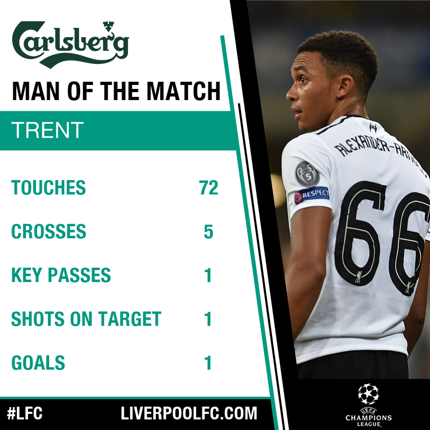 Лучший игрок матча, пожалуй, Александр-Арнольд. Крайний защитник практически ничего не дал сделать на своем фланге, забив при этом шикарный гол со штрафного – прекрасный результат для 18-летнего мальца.