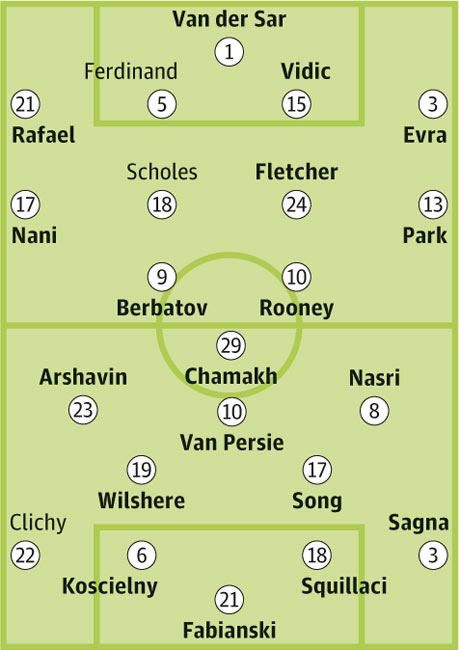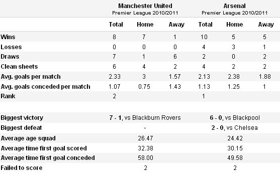 Ну и перейдём, непосредственно, к форме соперника. Как было уже сказано выше, «Арсенал» находится на первом места с 32 очками. Команда Арсена Венгера, как сказал Сэр Алекс на своей пресс-конференции повзрослела, и теперь по-настоящему готова завоёвывать трофеи. Блестящая форма Самира Насри, потрясающие матчи в исполнении Джека Уилшира и отличные общекомандные действия делают «Арсенал», пожалуй, самым опасным соперником в этом сезоне.