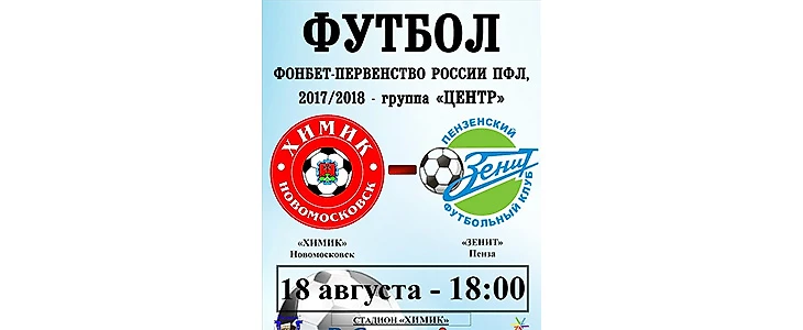 18:00. «ХИМИК» Новомосковск - «ЗЕНИТ» Пенза