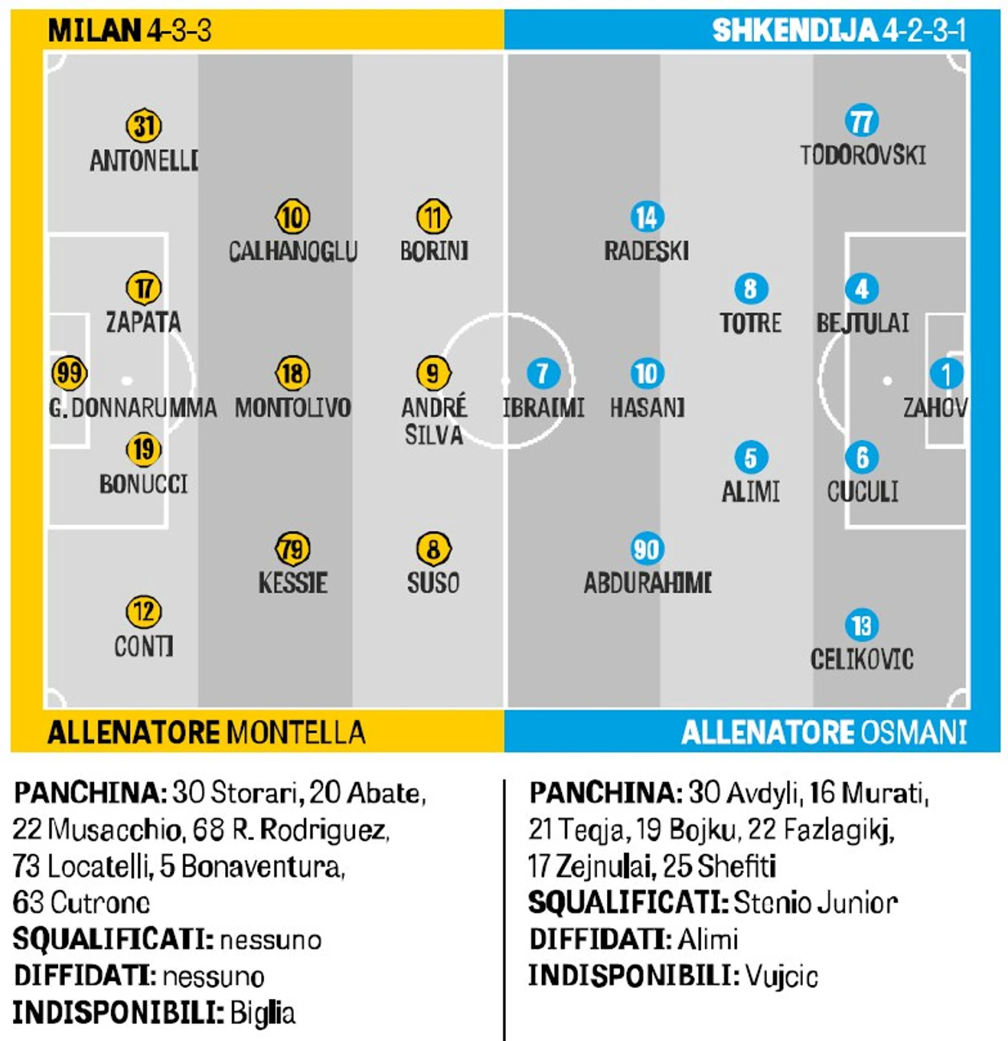 Первоначально первая игра двухматчевого противостояния должна была состояться в Скопье, однако из-за проблем с логистикой, а если быть совсем точным, в связи с тем, что в этот же день на стадионе «Филипп II» состоится игра в рамках того же турнира другой македонской команды – «Вардар» (стадион «Шкендии» в Тетово не прошел лицензирование). По этой причине УЕФА пошло навстречу командам и первый матч пройдет на Сан Сиро, на котором сегодня ожидается около 40 тысяч зрителей (в том числе и большой гостевой десант).