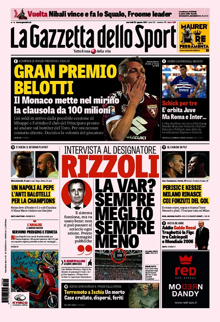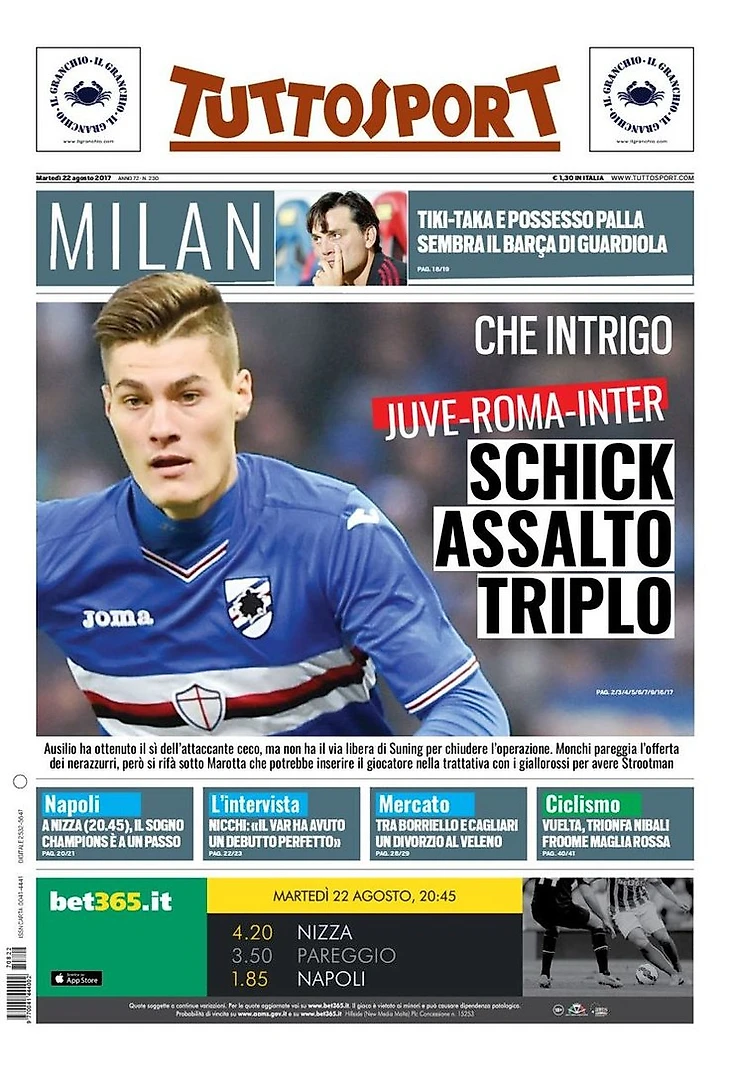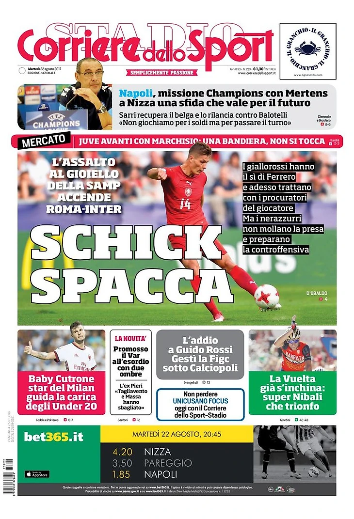Шик, тройной штурм. Заголовки Gazzetta, TuttoSport и Corriere за 22 августа