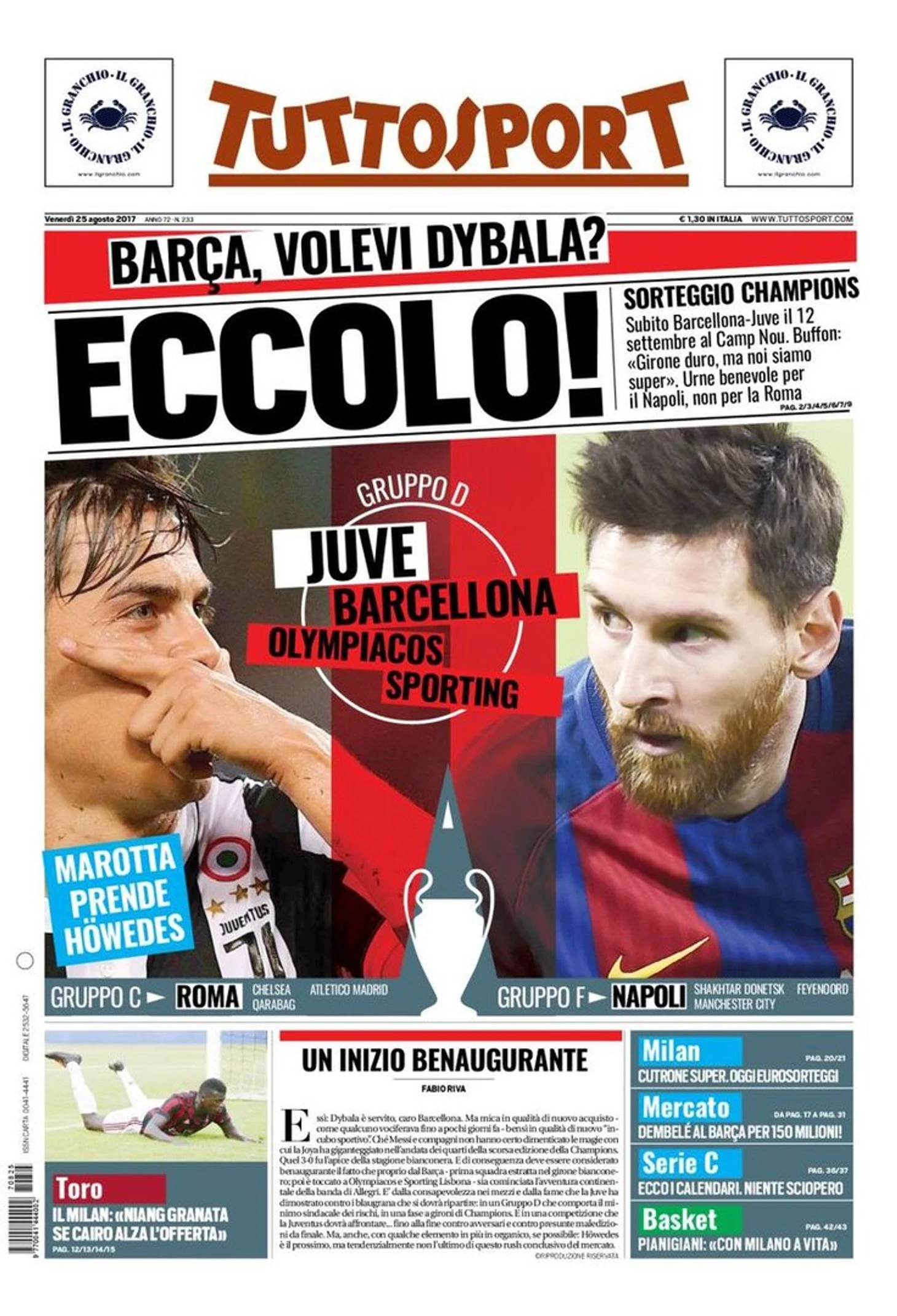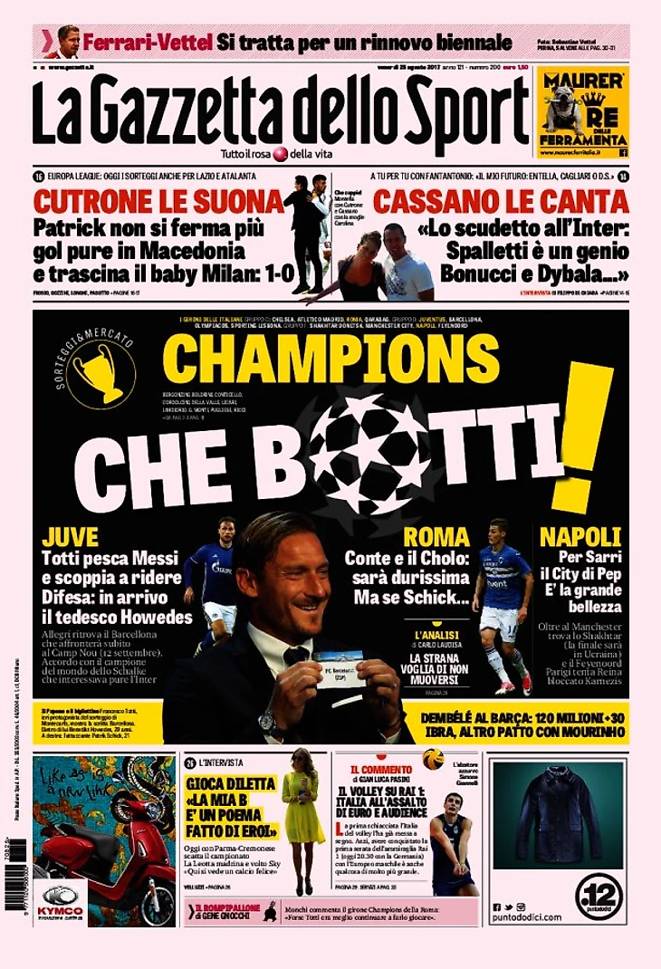Лига Чемпионов, каков удар! Заголовки Gazzetta, TuttoSport и Corriere за 25 августа