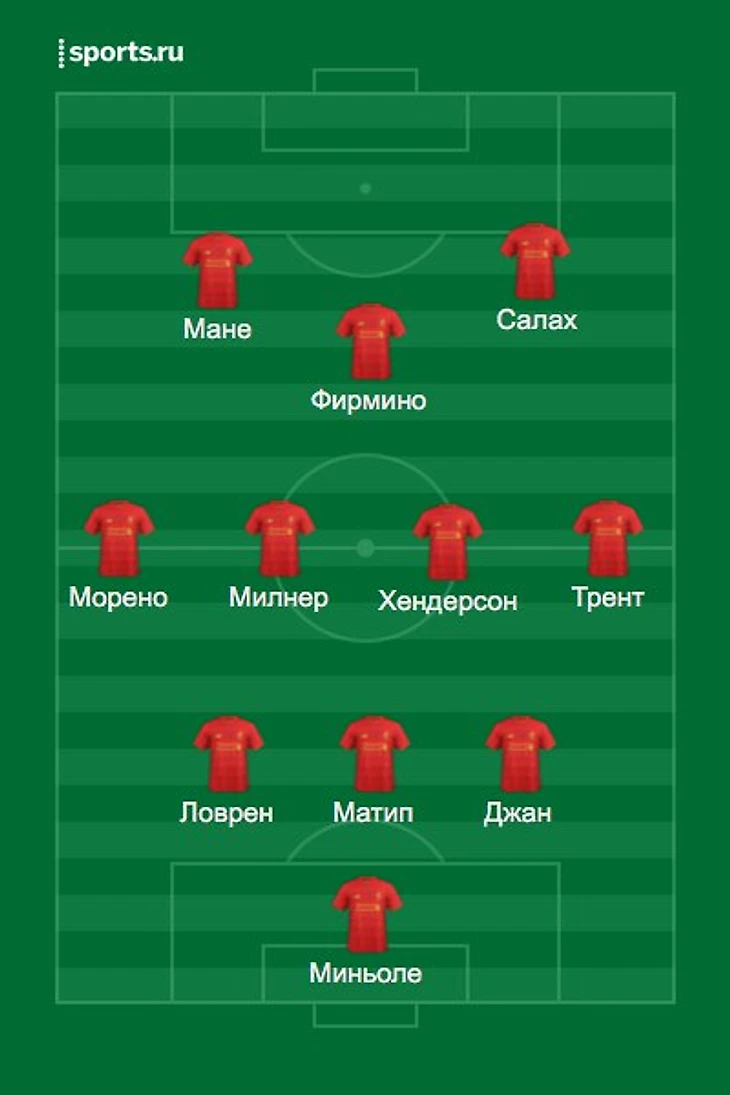 Нападение оставить, как есть: Салах, Мане и Фирма. Бразилец - единственный из основы в остутствии Коута и Лалланы, кто способен выдавать пасы-конфетки для этих двоих. Ну может еще Милнер, разве. Поэтому, атакующую тройку не трогаем.