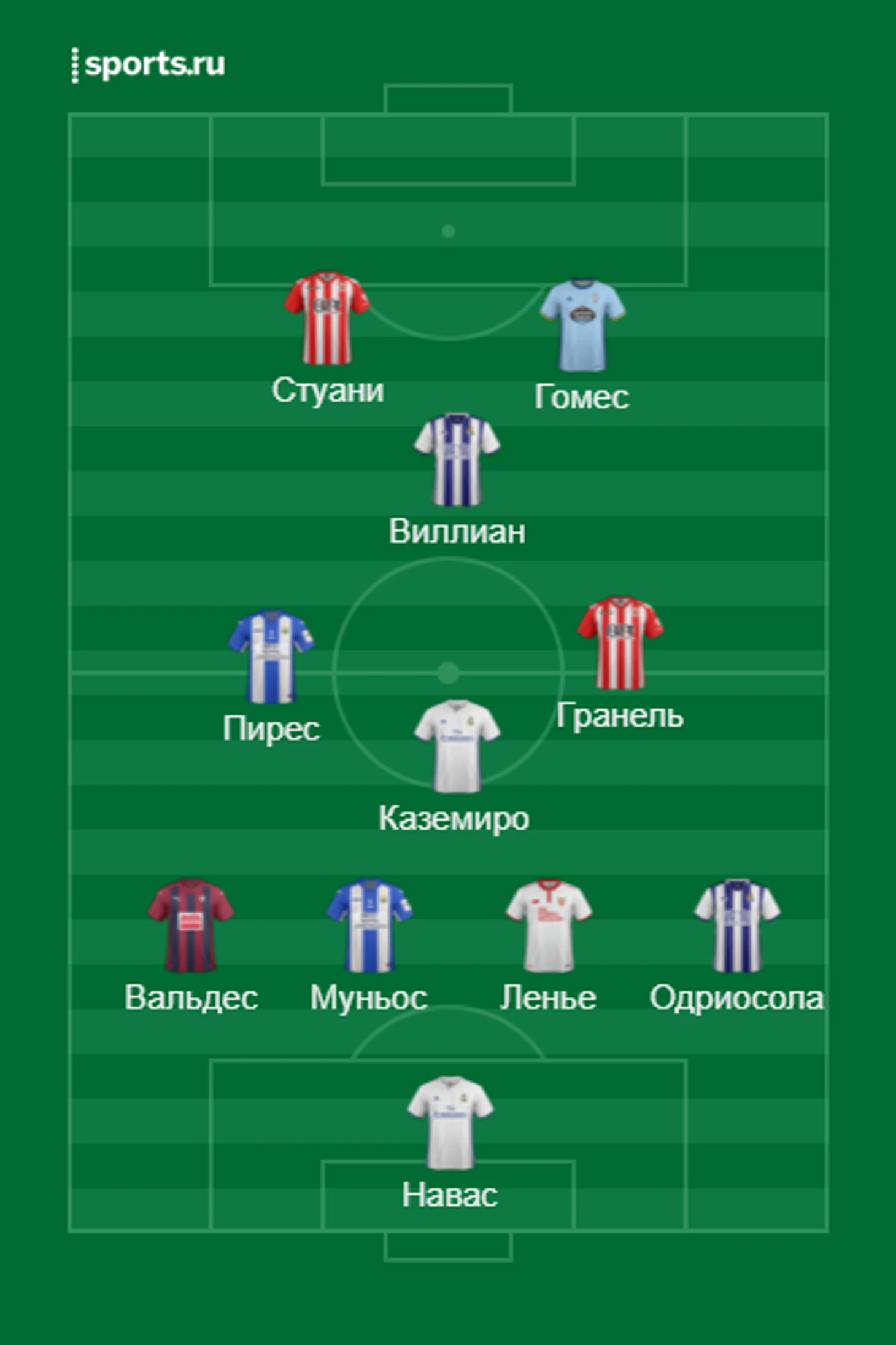 У «Мадрида» получается абсолютно всё, даже игра на половину своих возможностей. Кейлору Навасу пришлось попотеть, поэтому он находится в числе лучших игроков первого тура примеры. Все вратари демонстрируют прекрасную подготовленность, а их сейвы не только элегантны, но и невероятно полезны.