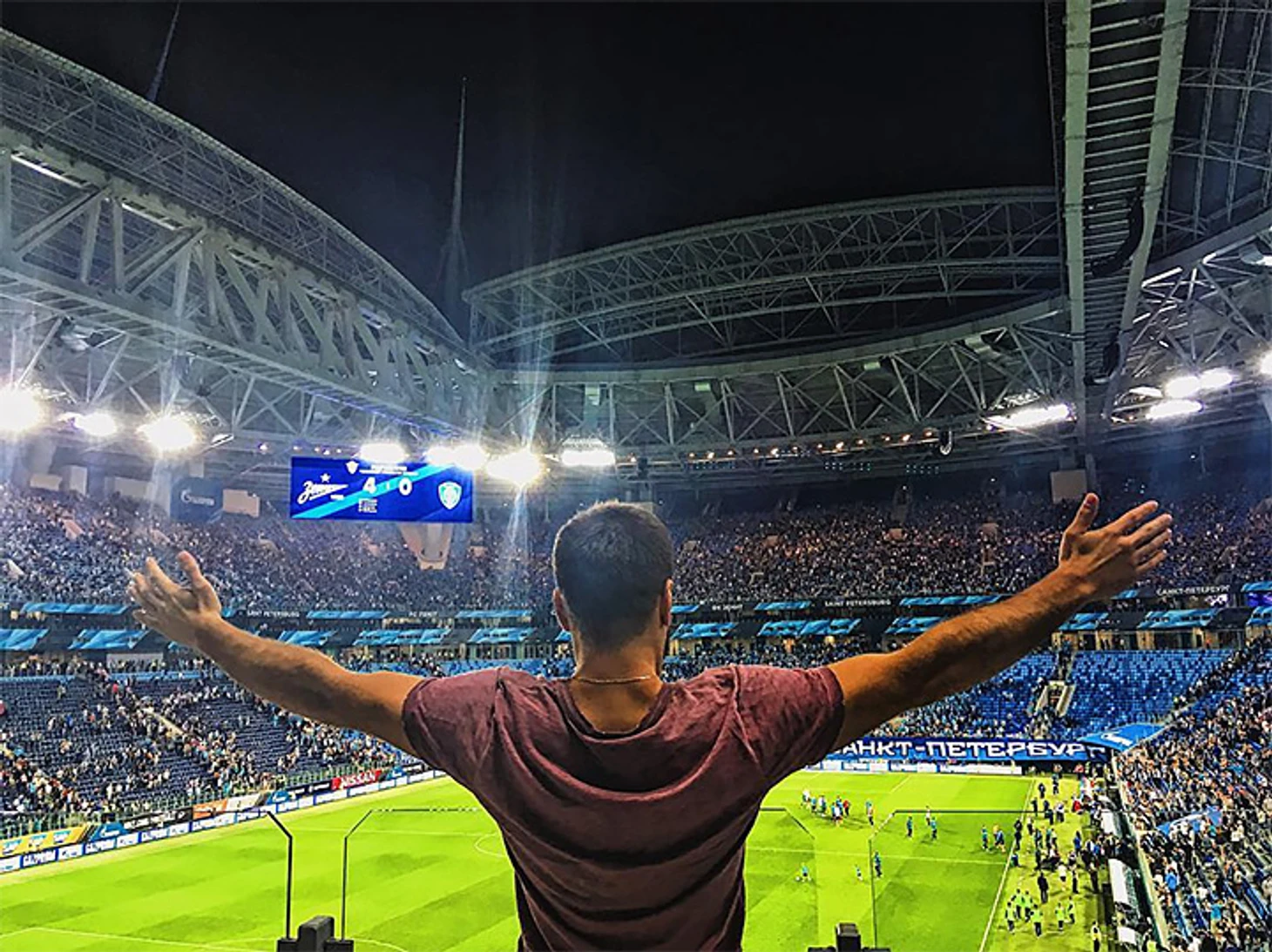Мы сидели в центре, вид был хороший. Чуть выше, чем я привык сидеть на «Открытии», поле чуть дальше, но, в принципе, ок. «Крестовский» больше, могу представить, что на самом верху уже чуть далековато. А так вид и там, и там приличный. Любой стадион без беговых дорожек дает более-менее нормальную перспективу.