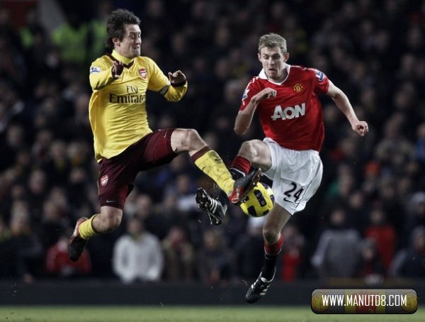 «Канониры» не могли ничего противопоставить скорости «Красных Дьяволов». Нани ушел от Шамаха и тот врезал португальцу прямо в коленку! Желтая… А ведь если Уебб увидел игру рукой в штрафной площади, то это была бы уже красная!