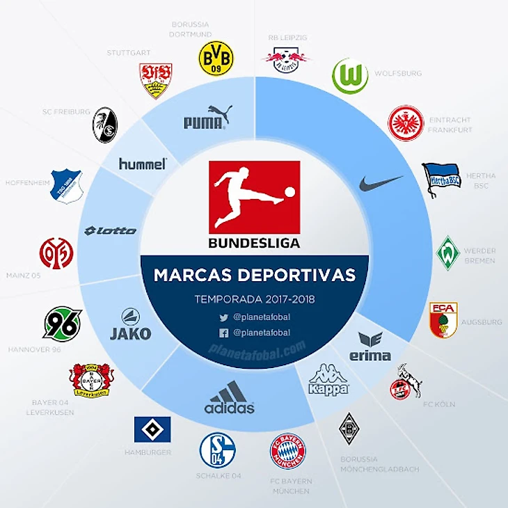 Распределение спортивных брендов среди клубов Бундеслиги на сезон 17/18