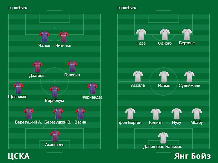 Состав ЦСКА был очень даже предсказуем. При здоровом Дзагоеве в ключевых матчах Натхо в основе не выйдет. Миланов едва ли сможет вытолкнуть Витиньо или Головина из основы, а Игнашевич или Березуцкий – вопрос кондиций, это скорее ротация, т.к. в Екатеринбурге играл многолетний ветеран. Ещё по работе в БАТЭ я знаю, что для Гончаренко очень важны кондиции игрока, причем в определённом случае, если нужно выбирать между техникой и кондициями, Виктор Михайлович всегда выберет второе. Отметим, что у «янгов» так же всё предсказуемо, учитывая повреждение Оаро, в составе на острие появился Нсаме.