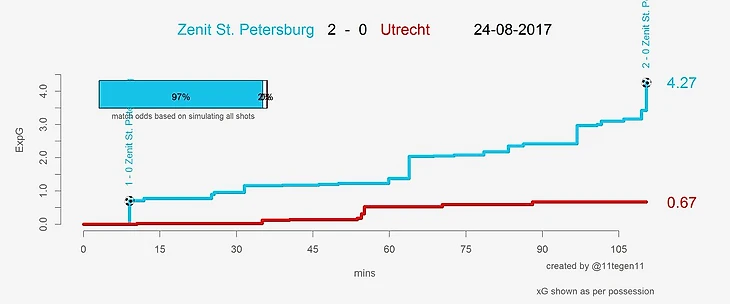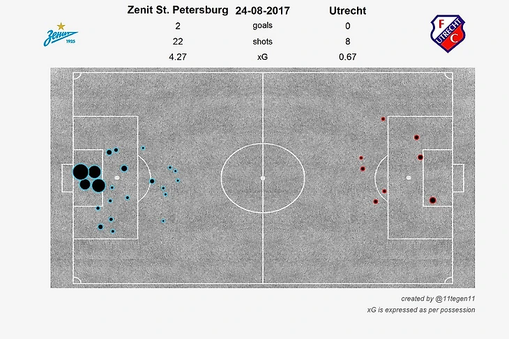 Причем около 80% xG набили после 60 минуты, когда голландцы сильно подсели, привет тем кто писал о сильном превосходстве Утрехта по физике.
