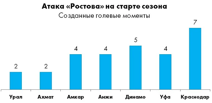 «Ростов» не только привычно надёжен в обороне (лишь 3 пропущенных мяча в 7 турах – лучший результат наряду с «Зенитом»), но и способен достаточно остро атаковать, причем в созидательном плане у команды наблюдается явная положительная динамика.