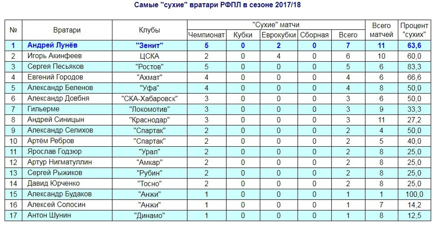 Источник: http://zenit-history.ru/statistika/228-raznoe/6374-samye-sukhie-vratari-rfpl-v-sezone-2017-18