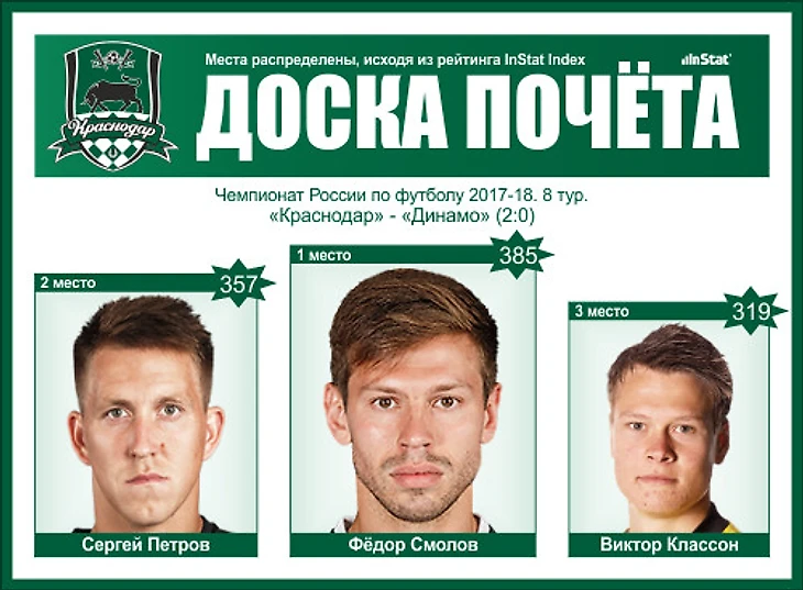 Отмечу, что аж пятеро краснодарцев попали в дрим-тим 8 тура РФПЛ: Смолов, Классон и Петров - в основу, Шишкин и Гранквист - в запас. Это очень круто! Вперёд, "быки"!
