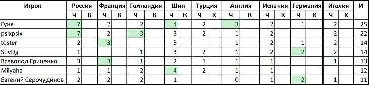 Сергей toster и Гена StivDg также забили по 4 мяча и продолжают делить 3-е место в нашем списке. Гена - один из лучших бомбардиров в Германии.