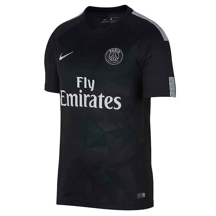 Новая третья форма "ПСЖ" 2017-2018 имеет черный цвет с серыми полосками на плечах. Эмблема, и логотипы спонсоров выполнены в монохромном сером цвете. Форму покрывает хаотичный узор, который можно было увидеть на третьей форме "Челси", "Атлетико" и других клубов.