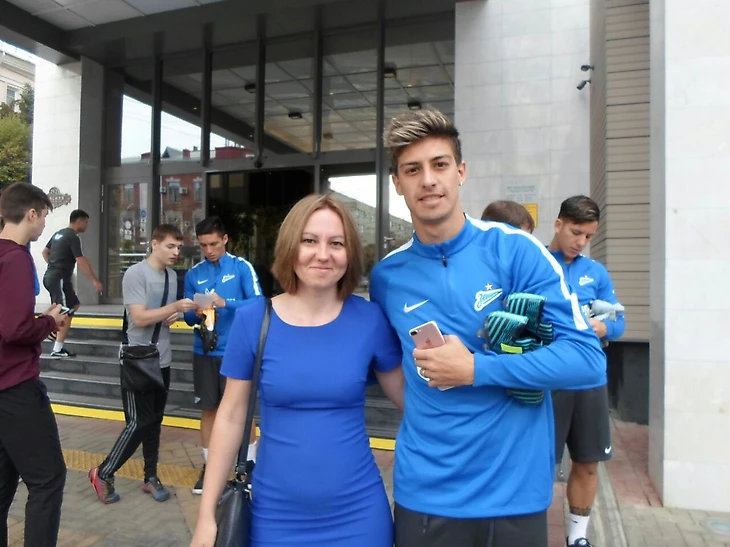 День начался с того, что мы поехали к отелю, где остановился Зенит. В прошлом сезоне я удачно попала на прогулку зенитовцев и в этом опять хотела попытать удачу. В общем ехали мы не зная во сколько и когда выйдут ребята, но если ты с душой болеешь за команду, то удача будет на твоей стороне. Только мы подошли к отелю и тут выходят зенитовцы. Стоит отметить, что ребята были с утра очень серьёзные и сосредоточенные. Если с Луческу в прошлом сезоне они гуляли по улице Красной, то с Манчини никаких прогулок. В 10.00 на тренировку. Но немного фото мы сделать успели.