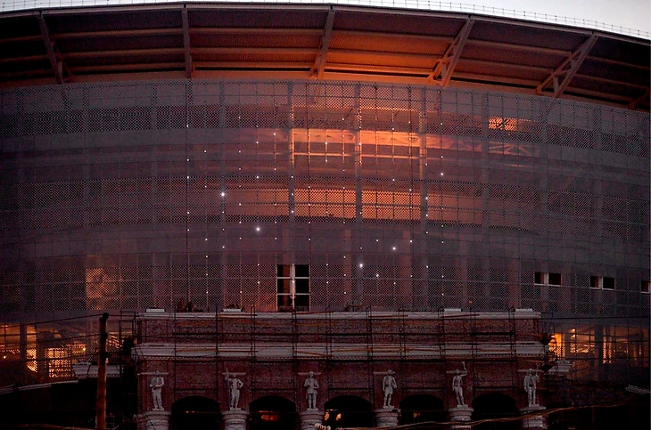 Какой прикол было сохранять старый фасад только и эти трибуны за воротами "за пределами" стадиона.. в общем проект спорный, но ходить бум с удовольствием!