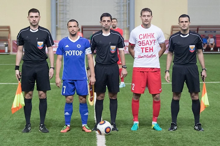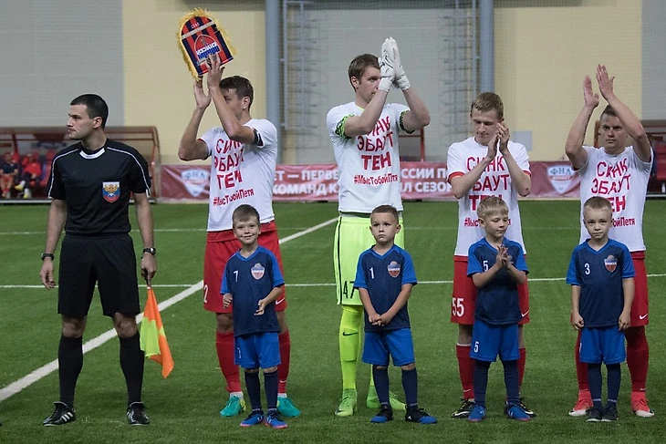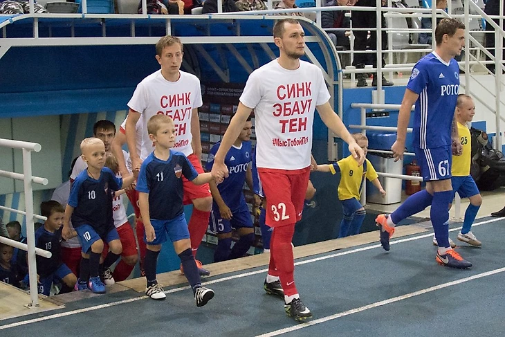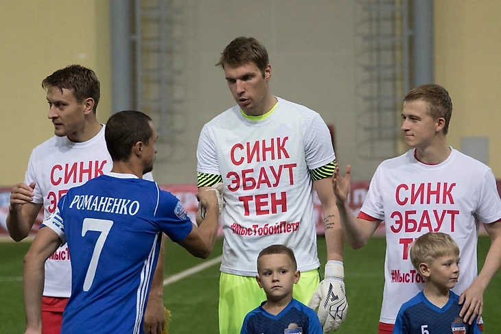 На матч с «Ротором» игроки «Енисея» вышли в футболках в поддержку защитника Петра Тена, который получил тяжелую травму – разрыв крестов и мениска.
