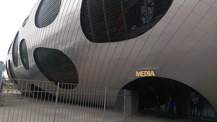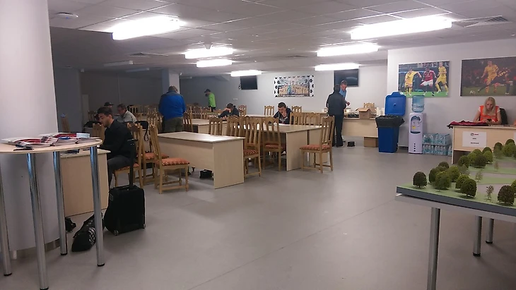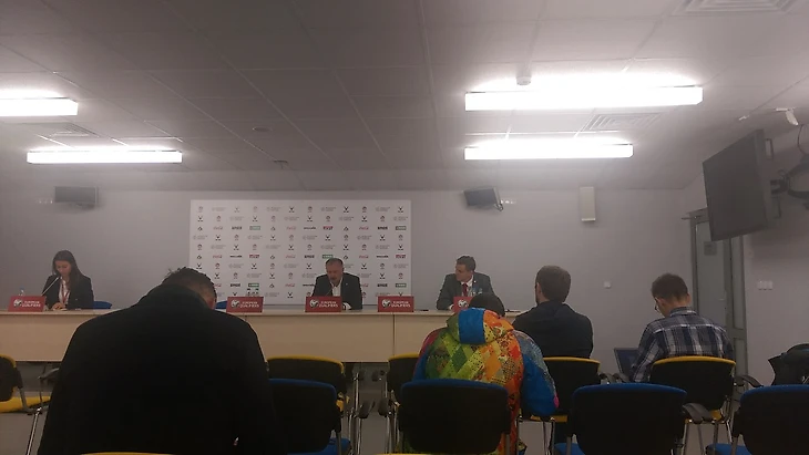 Затем, зашли в помещение для прессы, где уже обитали жуналисты и корреспонденты.