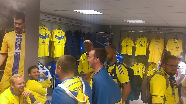 Когда закончили всю основную работу, мы направились в фан-шоп стадиона, где проходила выдача билетов участников вышеупомянутого семейного фестиваля. Как ни странно, в фан-шопе оказалось столько шведских болельщиков в желтых цветах, что невольно представил себя на матче Лиги Чемпионов и это были не шведские, а борисовские болельщики, цвета-то те же! Но смешной шведский язык выдал скандинаских шпионов :)