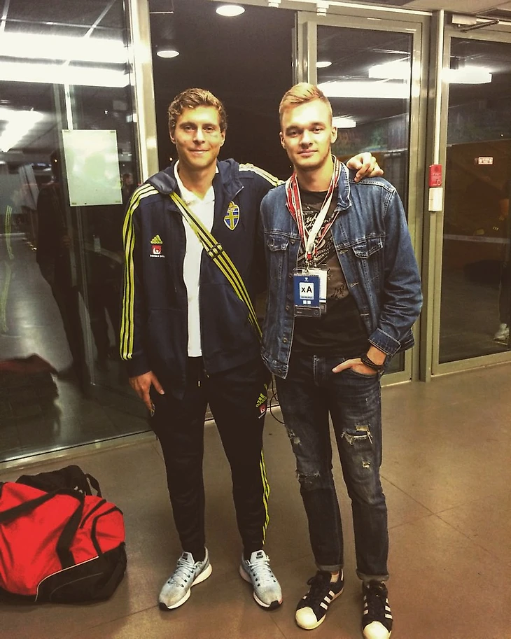 После пресс-конференции неожиданно много игроков шведской сборной оказалось в коридоре на выходе, где они раздавали интервью для различных СМИ. Нам удалось "выцепить" пару игроков для фото: Виктора Линделефа, Джимми Дурмаза и Андреаса Гранквиста! Эмоции били через край! Линделеф оказался скромным парнем: поздравив его с хорошей игрой он крепко пожал руку и поблагодарил (ух, было приятно)!