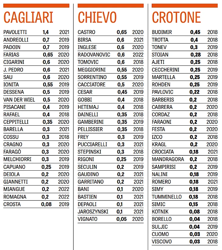 Диета по-итальянски. Кто и сколько получает в серии А (сезон 2016/17)