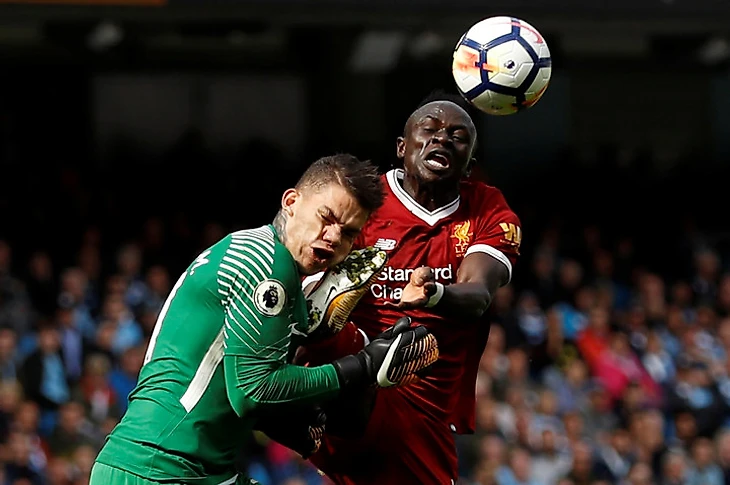 В главном матче английского тура «Ман Сити» играет с «Ливерпулем». Ближе к концу первого тайма форвард гостей Садьо Мане после заброса из глубины поля выскакивал к воротам «Сити», поднял ногу, чтобы принять мяч, и врезался во вратаря хозяев Эдерсона. Получилось жестко.