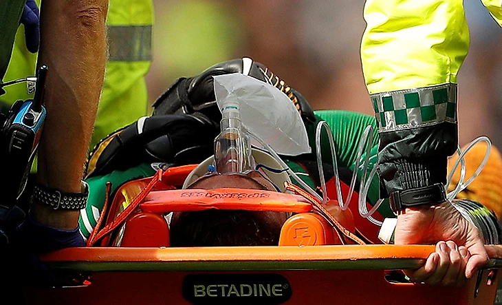Эдерсону почти 10 минут оказывали помощь и с кислородной маской унесли на носилках.