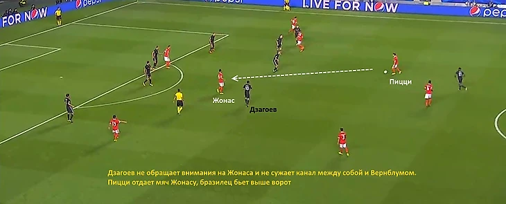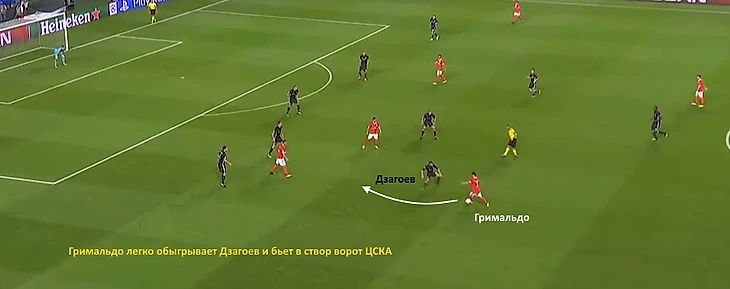 Удар Гримальдо в штангу тоже случился после позиционной ошибки Дзагоева.