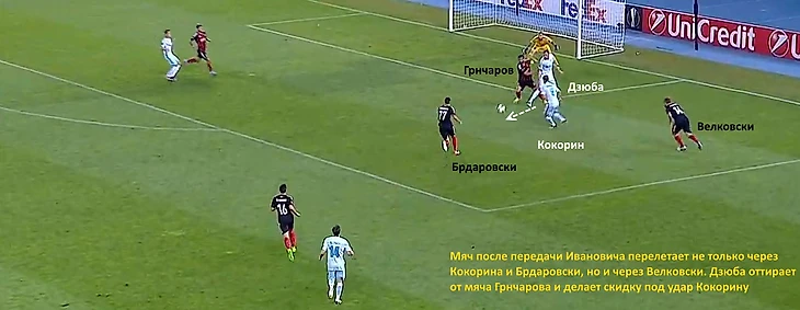Роль Дзюбы в мячах Кокорина точно не была ключевой – габаритный форвард, конечно, отвлекал внимание защитников «Вардара», но Грнчаров (в первом голе) и Брдаровски (во втором) допустили чудовищные позиционные ошибки, никак не связанные с присутствием в штрафной Дзюбы.