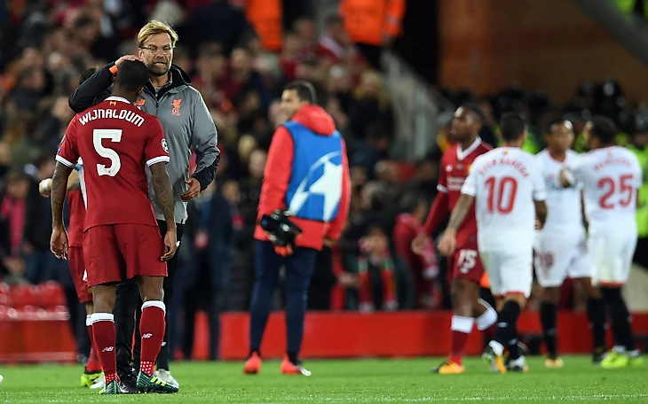 Пусть вас не смущает равенство по владению мячом, слаженная система прессинга «Ливерпуля» не позволяла испанцам создать что-либо у своих ворот почти весь матч: форварды из Севильи совершили лишь 11, 24 и 37 передач соответственно (при 41, 38 и 34 у «красных»). Сама система сбоев не давала, но персоналии все же ошибались.