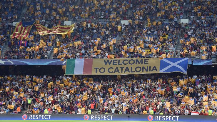 Последний матч «Барселоны» в Лиге чемпионов против «Ювентуса» (через день после Дня Каталонии) имел и политический смысл, который звучал не менее громко, чем дубль Месси и победа 3:0 над прошлогодним финалистом: там появились большие баннеры «Добро пожаловать в каталонскую республику» и «SOS, демократия».